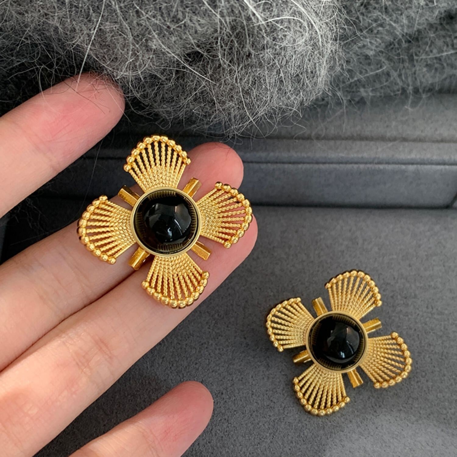 gold×black flower pierce K267